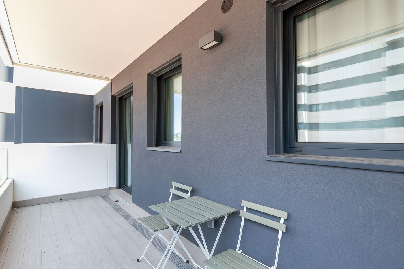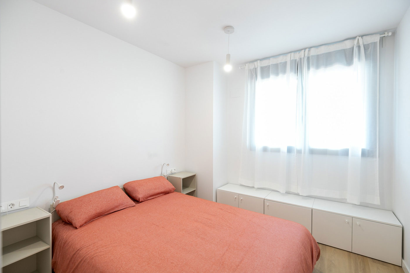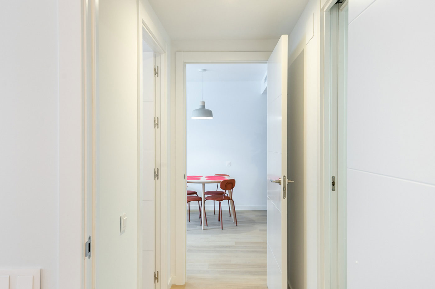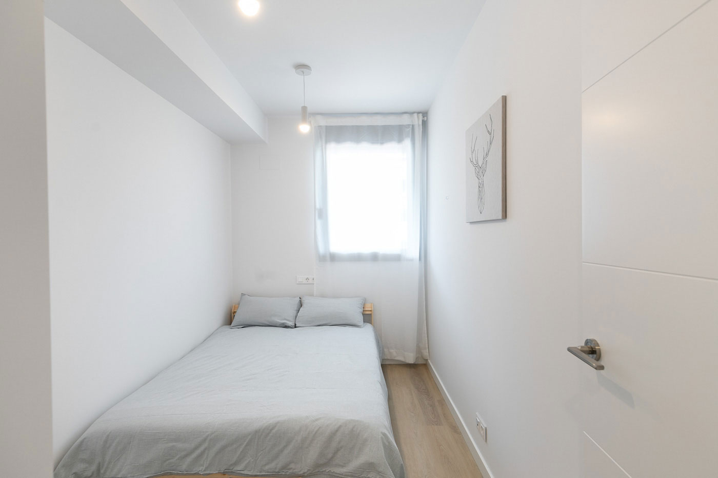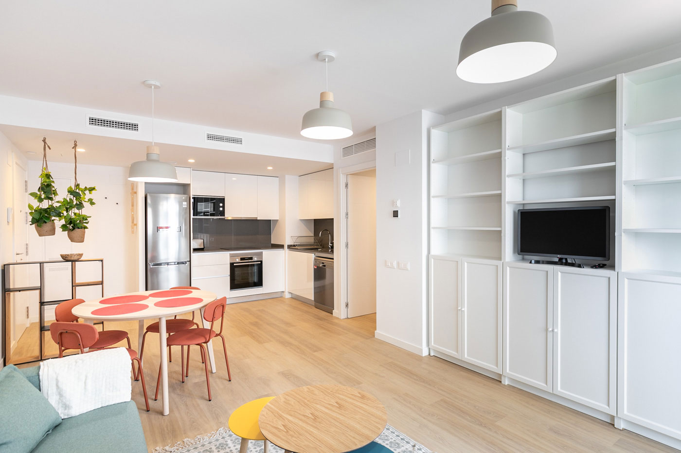 Este inmueble se compró como inversión estando los propietarios en el extranjero. El encargo fue hacer un estudio de mercado, hacer los trámites administrativos, la decoración y el alquiler de la vivienda. El edificio es de una obra nueva, en una ubicación muy estratégica, por su cercanía al aeropuerto, su conexión con autopistas y transporte público. Cuenta con dos dormitorios, uno de ellos en suite, dos baños completos, un salón comedor con cocina americana, una terraza espaciosa, parking, trastero y piscina comunitaria.